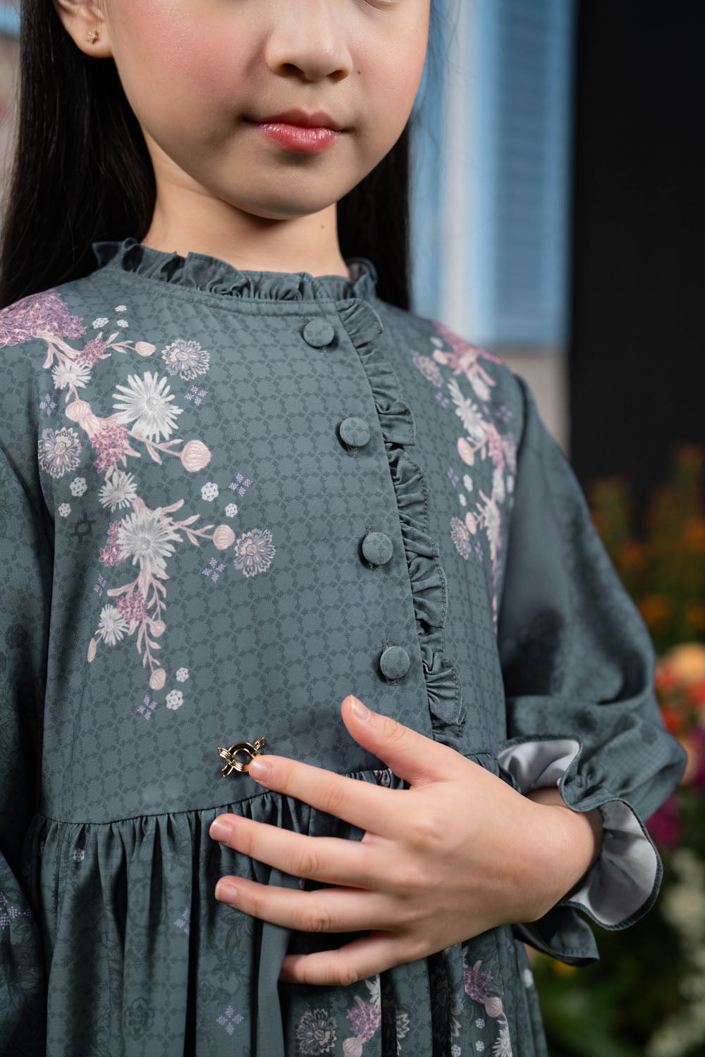 • Pergelangan tangan menggunakan karet elastis dan detail frills