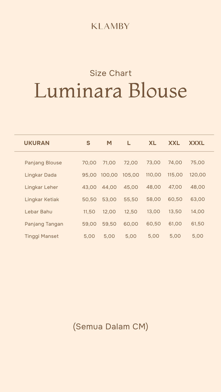 Detail Size Lingkar Dada :
