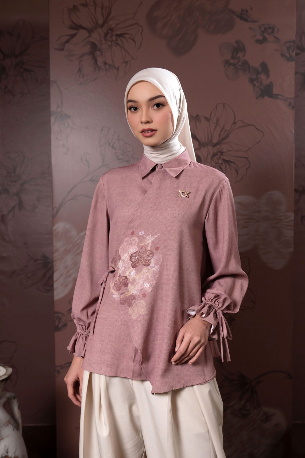 - Layer asimetris pada bagian bawah dilengkapi dengan tali yang dapat diikat pita ke samping, memberikan opsi styling yang manis dan feminin.
