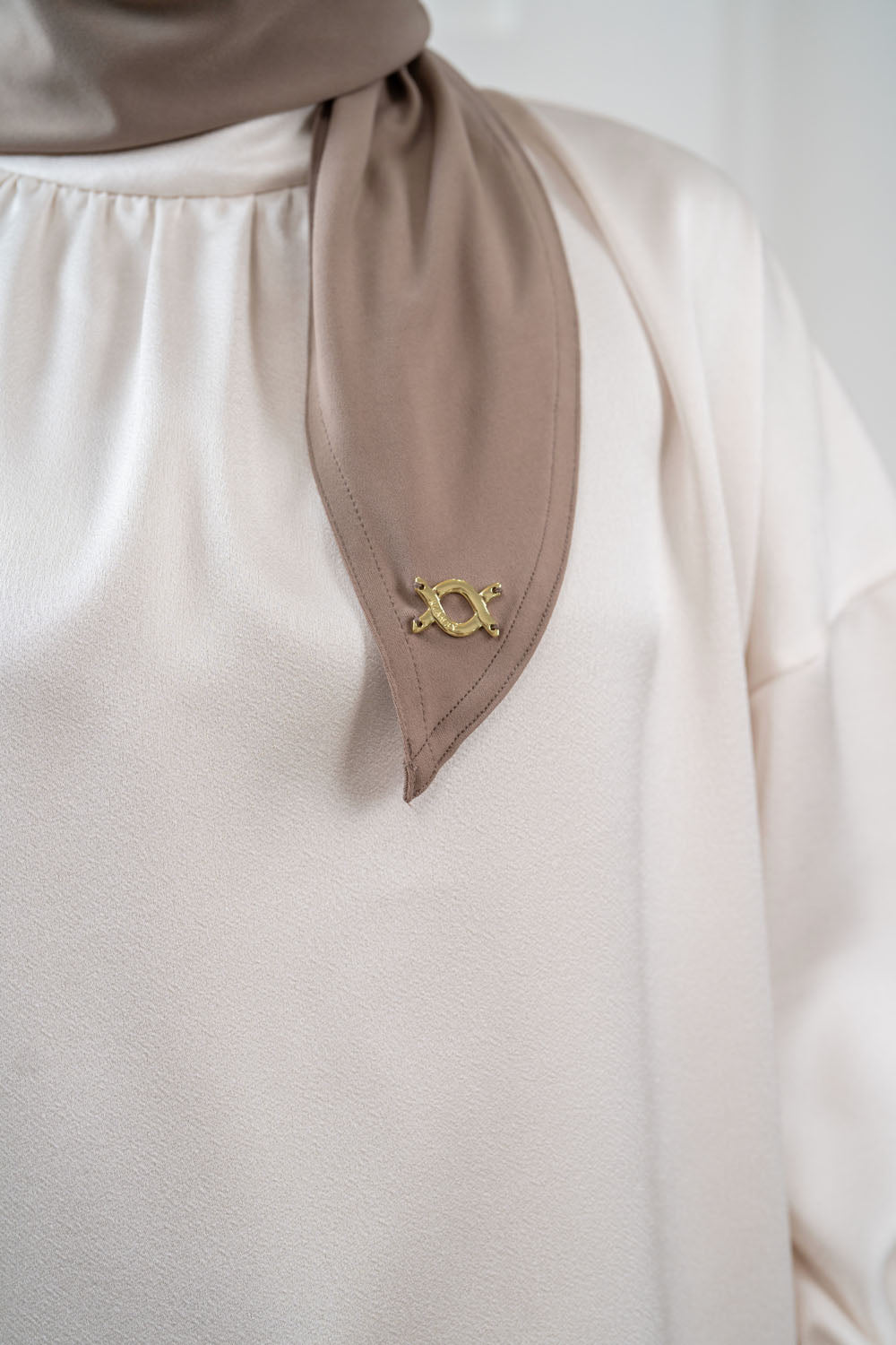 • Terdapat plat logo klamby pada tepi bawah hijab