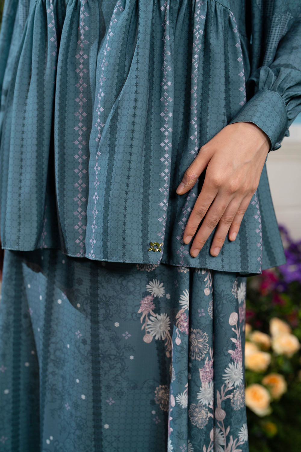 Blouse ini sangat cocok dipadukan dengan celana polos dan hijab polos atau hijab motif berwarna senada untuk lebih stylish