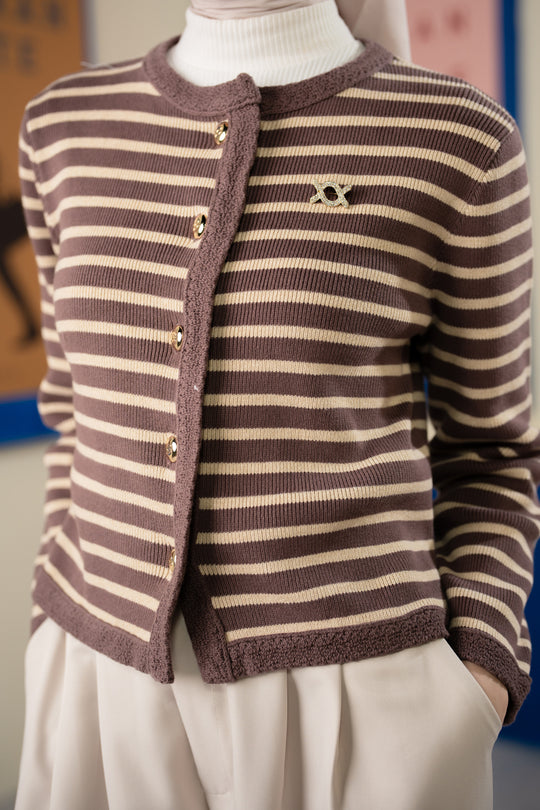 Elodie Stripe Knit Cardigan Twilight Mauve