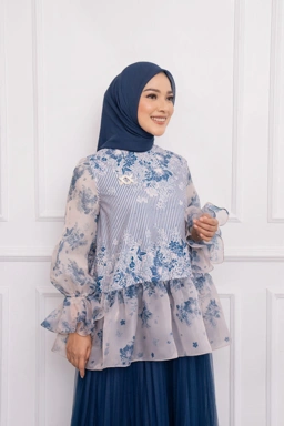 - Bahan organza yang elegan dan transparan pada bagian lengan