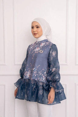 - Bahan organza yang elegan dan transparan pada bagian lengan