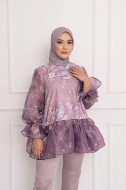 - Bahan organza yang elegan dan transparan pada bagian lengan