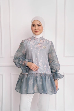- Bahan organza yang elegan dan transparan pada bagian lengan