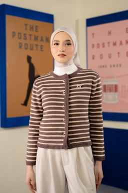 Volume cardigan loose / Boxy cardigan, tidak ketat pada bagian panggul