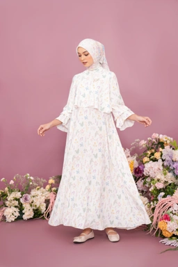 Dress ini memiliki detail layering atas Yang membuat kesan lebih feminin dan jenjang .