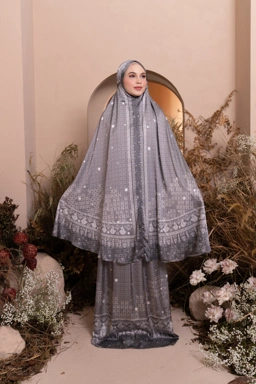 - Terdapat plat gold 1 pcs di bagian tengah bawah mukena atas