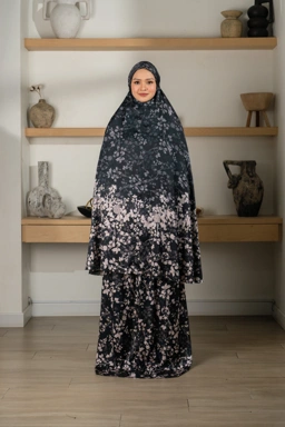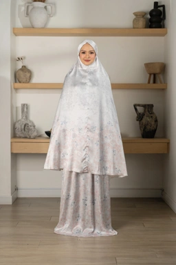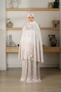 Terdapat plat gold 1 pcs di bagian tengah bawah mukena atas