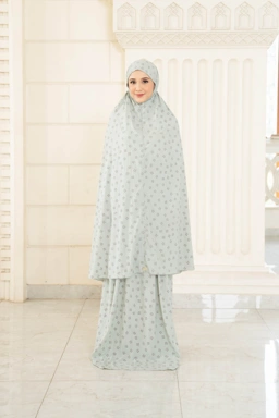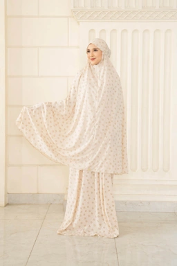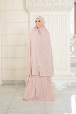 Terdapat plat gold klamby pas bagian tengah tasan mukenah