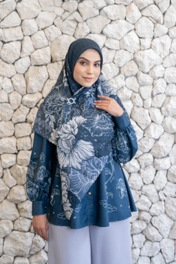 Leysha Shirt & Scarf Syar'i Set Lunar Blue