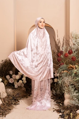 Terdapat plat gold 1 pcs di bagian tengah bawah mukena atas
