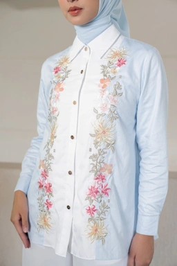 Terdapat bordiran diatas jahitan perbatasan bahan Poly Cotton dan bahan stripe