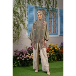 Tunic ini sangat cocok dipadukan dengan celana polos dan hijab polos atau hijab motif berwarna senada untuk lebih stylish