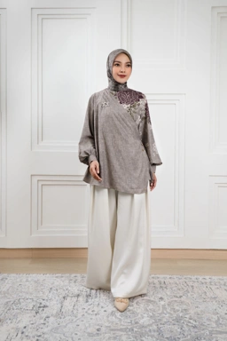 Blouse ini sangat cocok dipadukan dengan celana polos dan hijab polos untuk tampilan yang simple namun tetap stylish.