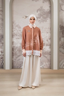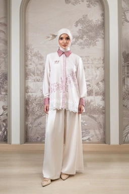 Aksen lace katun di tepi bawah baju sebagai highlight elegan