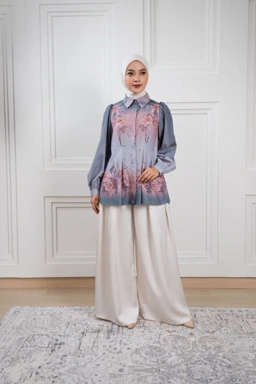 Blouse ini sangat cocok dipadukan dengan celana polos dan hijab polos untuk tampilan yang simple namun tetap stylish.