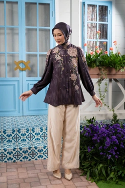 Lengan panjang puff bagian atas dan bawah dengan opening snap button pada bagian manset